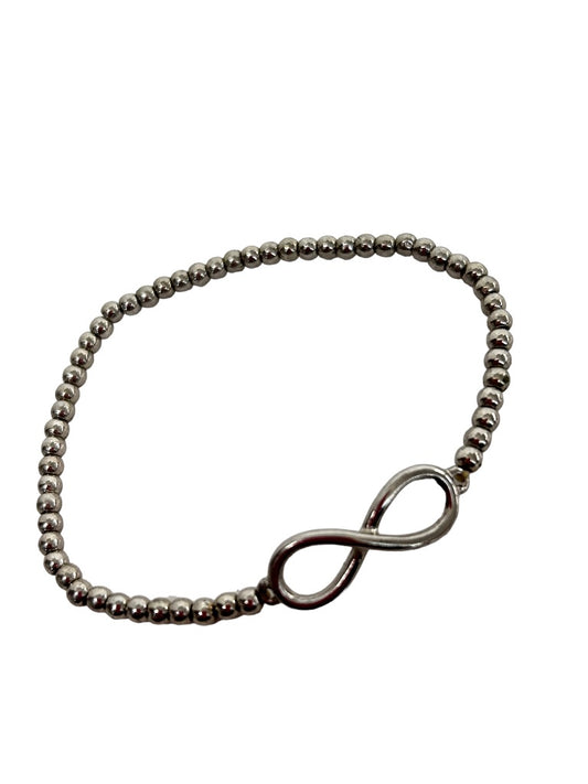 Silvertone Metal Beaded Stretch Bracelet Infinity Sign