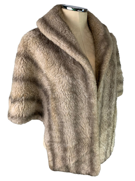 Vintage Glenoit Faux Fur Stole Shoulder Wrap Made in USA Brown Collar