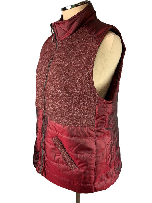 Large Casual Identity Women's Full Zip Burgundy Metallic Lightweight Puffer Vest