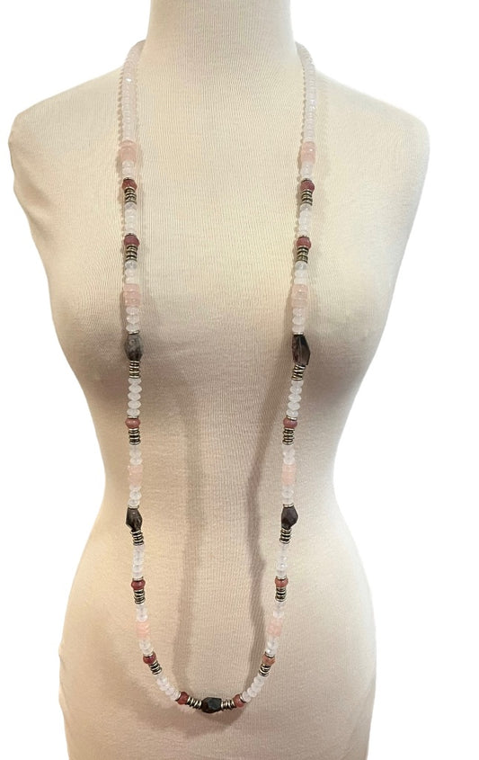 Chico's Beaded Multicolor Stone Acrylic Metal Beads Necklace 52"+4" Pastels