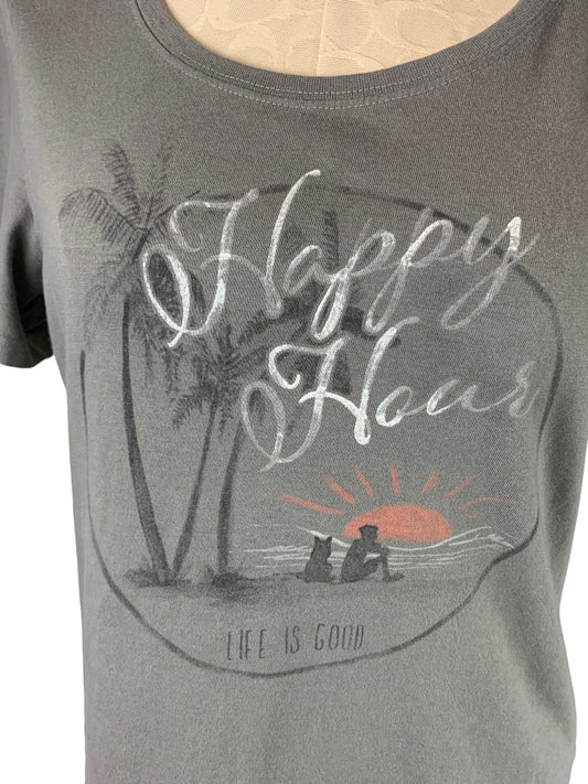 Medium Life is Good Women's Gray Short Sleeve TShirt "Happy Hour"