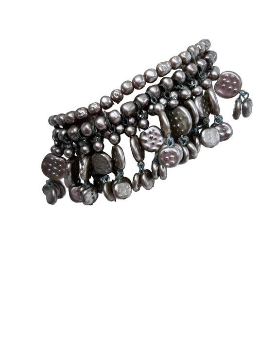 Cuff Bracelet Beaded Design Painted Metallic Brown Color Acrylic Beads Wire Adjustable Fit