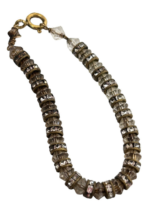 Goldtone and Crystal Beaded Gold Filled Bracelet 5.75" Petite Size