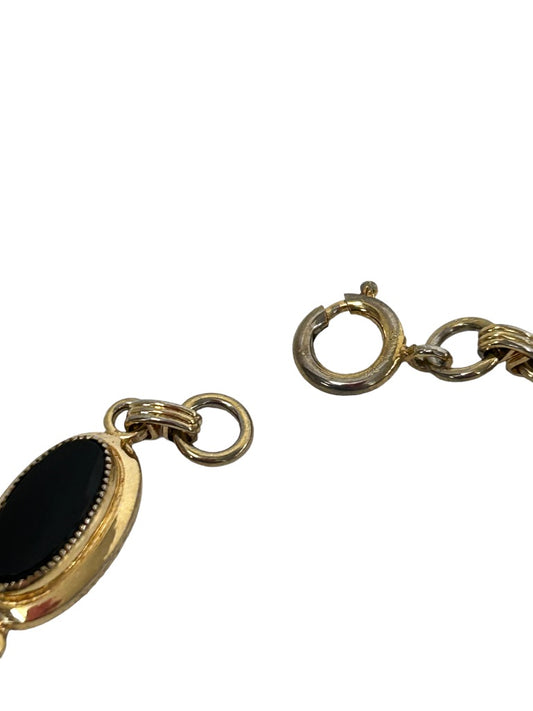Goldtone and Black Glass 7.5" Bracelet Oval Shapes Lobster Clasp