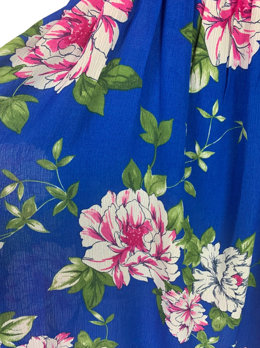 Medium as you wish Women's Floral Print Romper with Skirt Flowy Blue Pink