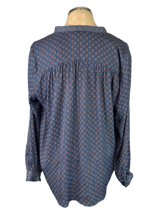8 H&M Women's Popover Blue Ascot Print Blouse Single Pocket
