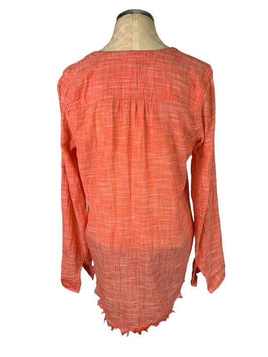 Small Caslon Women's Coral Popover Henley Blouse Slightly Sheer Raw Hem