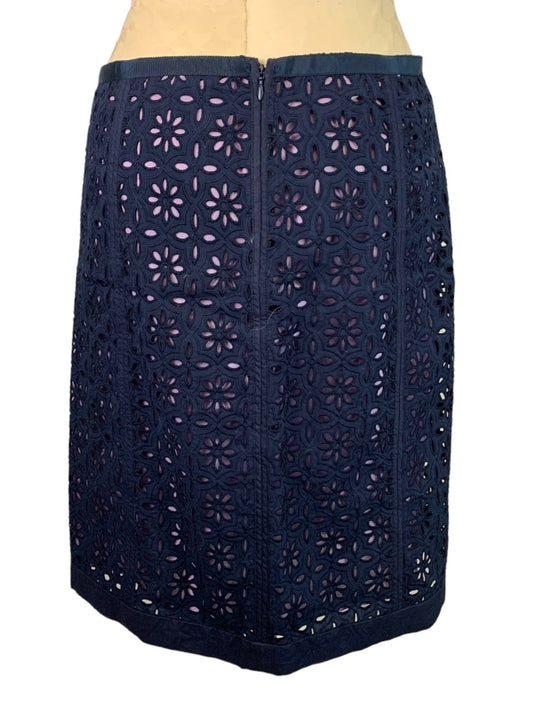 6 Robert Graham Navy Blue Eyelet "Caterina" Pencil Skirt Lavender Lined