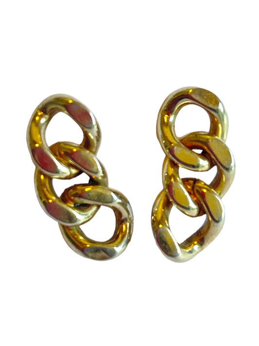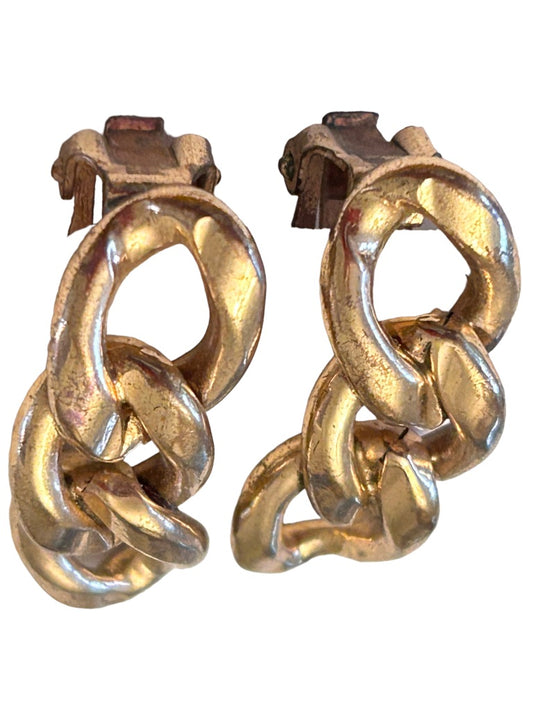 Vintage 1970s Signed Bergere 1.25" Clip On Non-Pierced Goldtone Chain Style Earrings