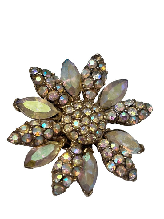 Vintage Goldtone Clip On Non-Pierced Daisy Earrings Aurora Borealis and Rhinestone 1.25"