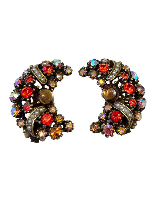 Vintage 1960s Signed ART Arthur Pepper Clip On Non-Pierced Crescent Moon Earrings