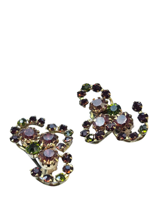 Vintage Clip on Non-Pierced Earrings Goldtone Rhinestone Earrings 1"