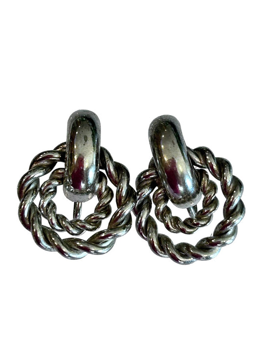 Vintage 1960s Signed Screwback Non-Pierced Silvertone Earrings Twist Circle 1.25"