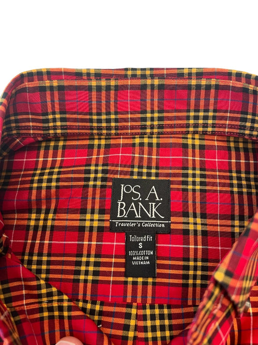 Small Jos A Bank Men's Plaid Button Down Traveler's Collection Tailored Fit