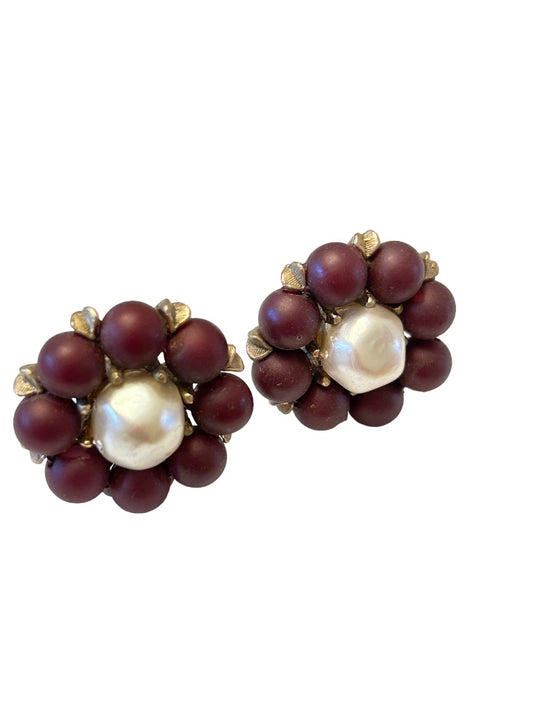 Vintage 1960s Clip On Non-Pierced Earrings Purple Bead Flower Shape 1 1/4"