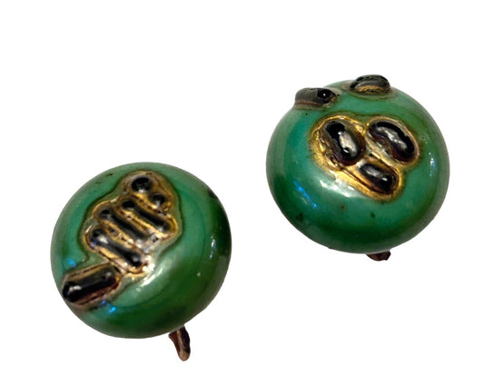 Vintage Green Abstract Dot Clip On Non-Pierced Earrings Goldtone .75"