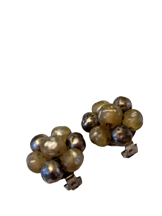 Vintage 1960s Japan Non-Pierced Clip On Earrings Metal Glass Beads 1"