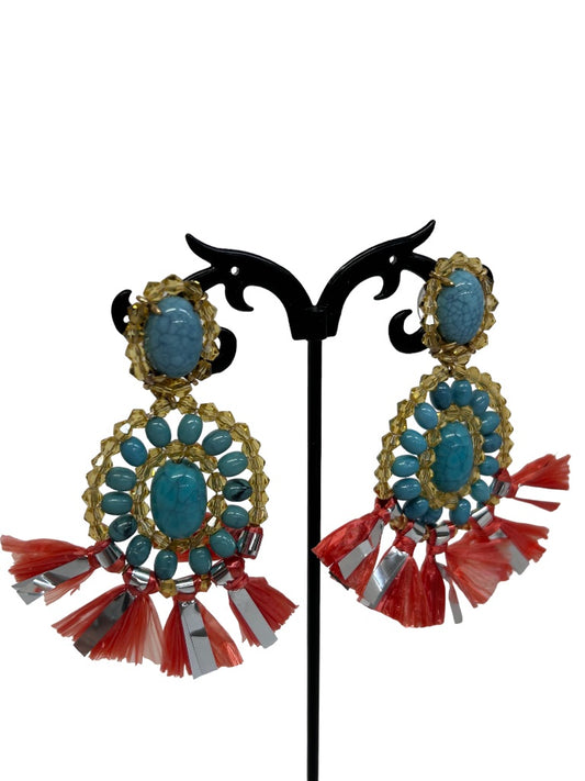 J.Crew Raffia Stone 3" Drop Raffia Post Earrings Style AQ988