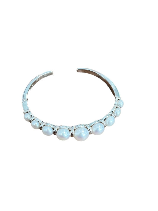Honora Sterling Silver Fresh Water Pearl Hinged Cuff Bracelet 6.75" inner circumference