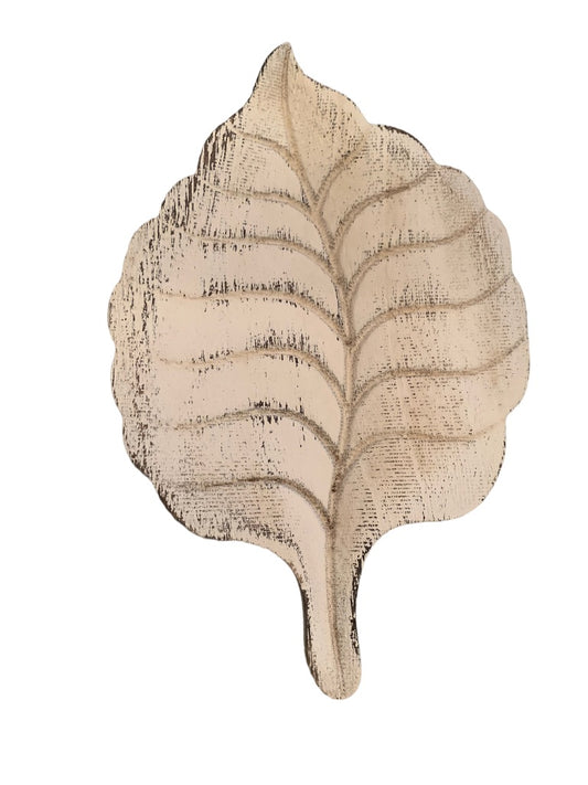 Wooden White Shabby Chic Leaf Dimensional Wall Hanging 11.5"h x 7"w