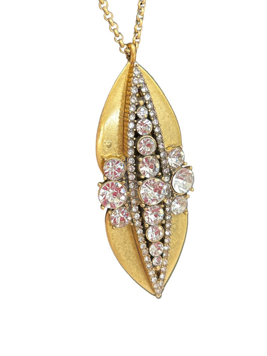 J.Crew Art Deco Style 32-34" Goldtone Necklace Encrusted Oval Pendant