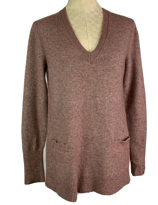 Medium J.Crew Women's Mauve V-Neck Alpaca Wool Blend Tunic Sweater with Pockets