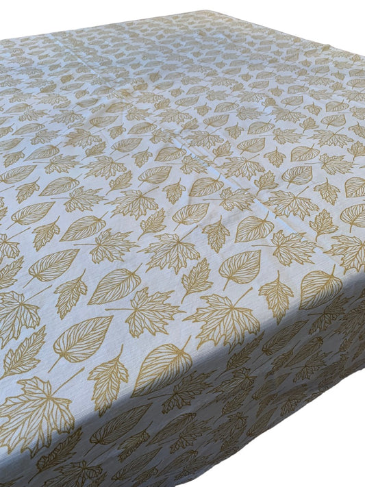 Rectangular Tablecloth Table Linen Cream with Gold Metallic Leaves 61" x 77"