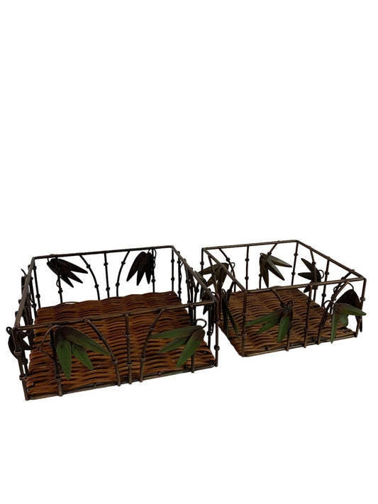 Pair of Nesting Baskets Tableware Leaf Design 7" and 5.5" Square