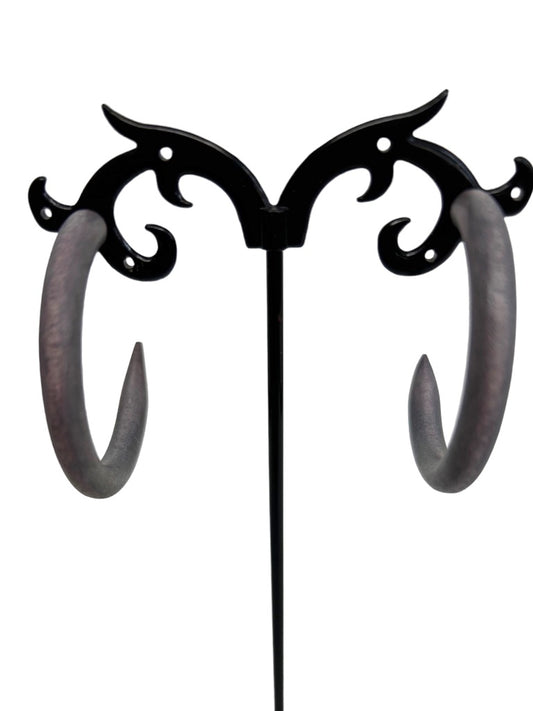 Pointed Hoop Gray Lavender Pierced Post Earrings 1 5/8"d Lightweight