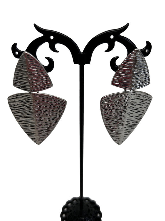 Arrowhead Shaped Silvertone Earrings Textured Pierced Post 2.25" Drop Dangle