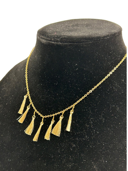J.Crew Goldtone 16-18" Necklace Fabric Metallic Gold Tassels Lobster Clasp