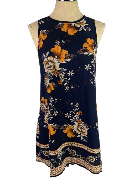 6 Shein Navy Blue Floral Pattern Sleeveless Shift Dress Short