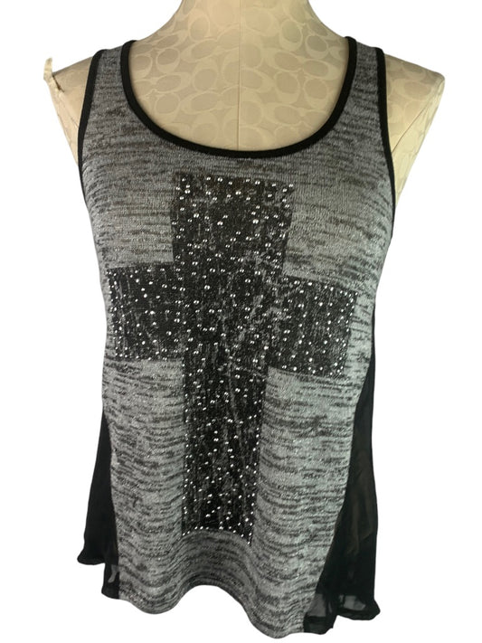 Small Unbranded Black Gray Women's Tank Cross Embellished Sheer Back Top