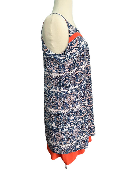 Small THML Paisley Spaghetti Strap Pull Over Dress Anthropologie Blue Pink Orange