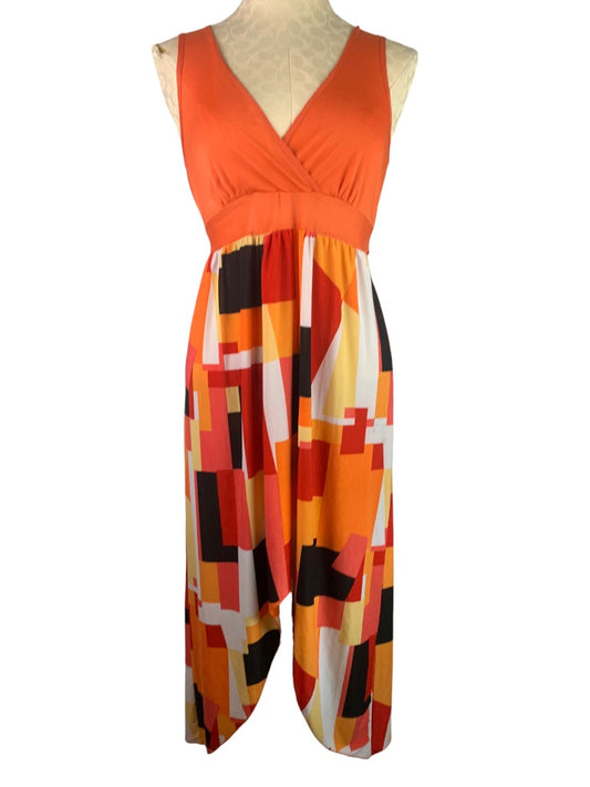 Small Julia Orange Retro Style Dress V-Neck Silk Blend