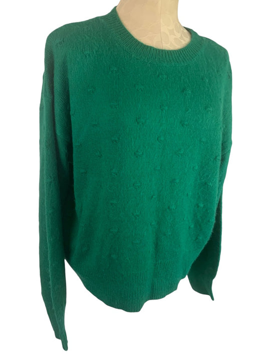 Large Vylette Women's Green Pullover Sweater Textured Dots Fuzzy