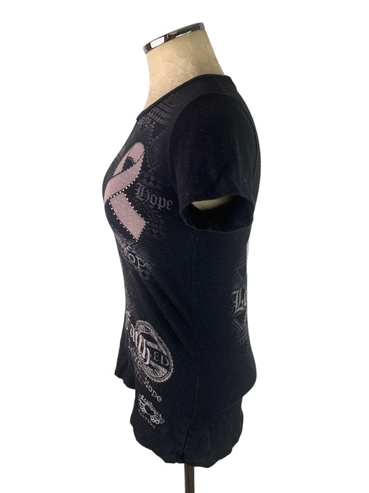 Small Katydid Women's Fitted Black Tshirt Pink Ribbon Tshirt