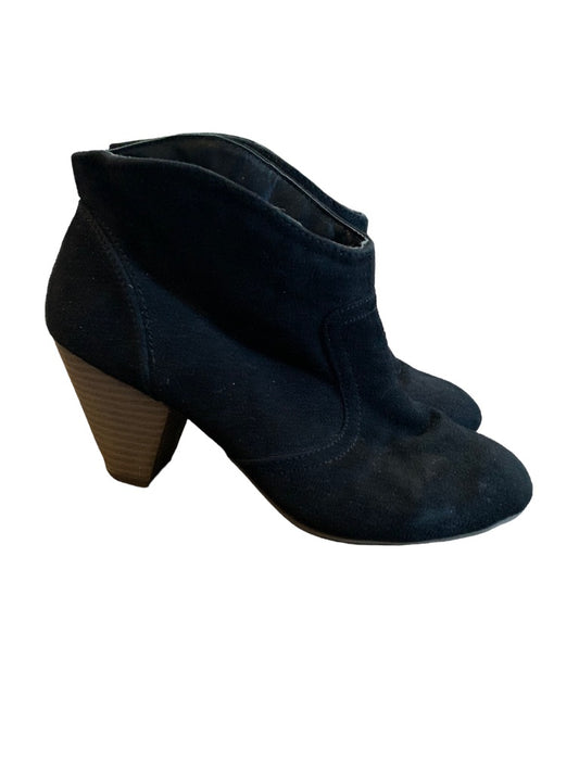 7.5 Just Fab Women's Faux Suede Black Stack 2.5" Heel Booties Pull On