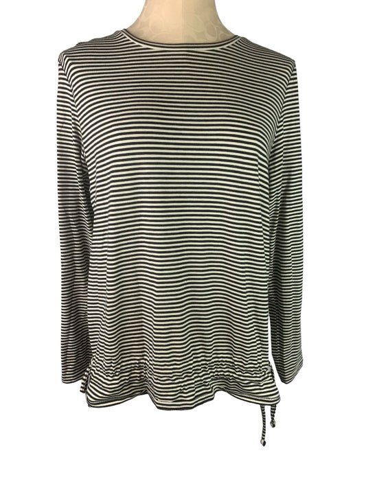 XS AnyBody Black White Stripe Women's Long Sleeve Tshirt Drawstring Hem