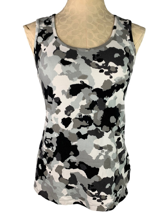 XXS D&Co Women's Abstract Print Fitted Knit Tank Top Sleeveless White Gray