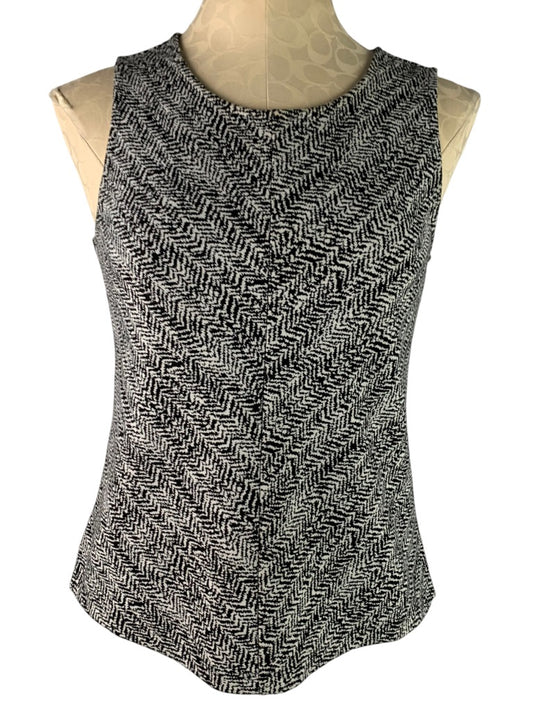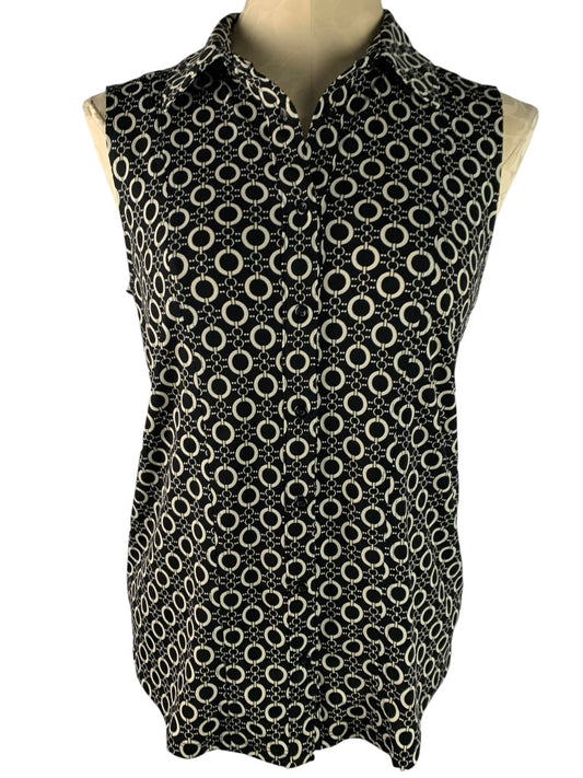 XS Kasper Women's Stretch Sleeveless Button Up Blouse Black White Print