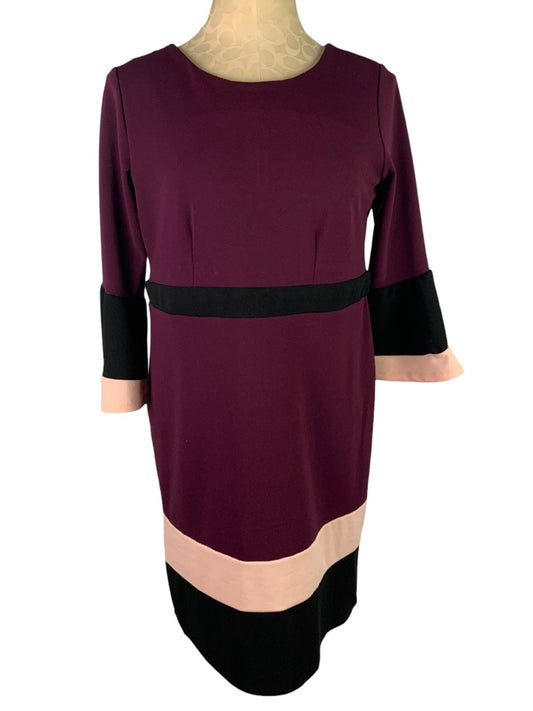 Small Petite NY Collection Purple Pink Color Block Dress Retro Style Bell Sleeve
