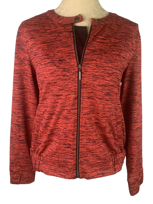 6 H by Halston Women's Red Black Space Dye Full Zip Collarless Jacket