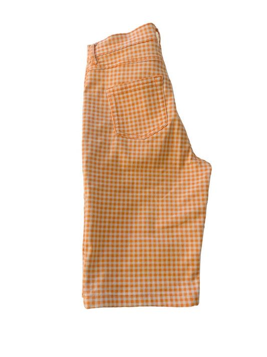 6 DG2 Diane Gilman Women's Orange White Gingham Stretch Denim Shorts