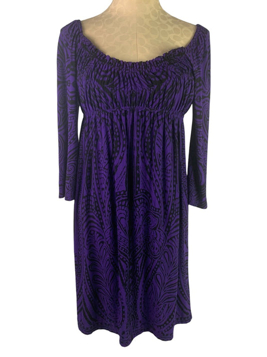 2 Muse Purple Black Paisely Off the Shoulder Dress Banded Waist