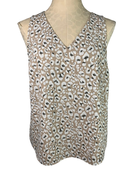 Small Nine West Women's Pullover Sleeveless Blouse Brown Animal Print Lined Front