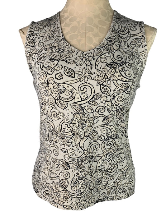 Small Croft & Barrow Women's V-Neck Sleeveless Stretch Tank Tan Black Floral