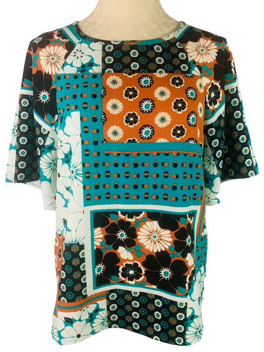 XXS Denim & Co Women's Pullover Stretch Short Sleeve Print Top