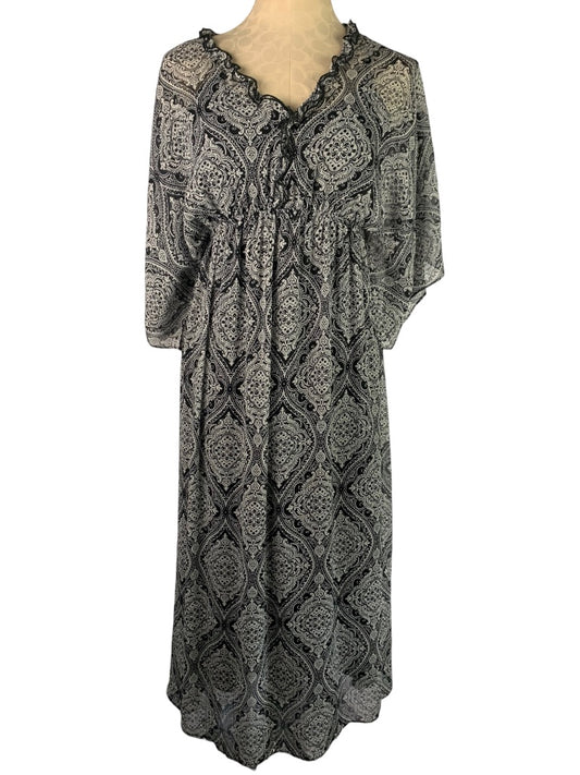 XS Curations 2 Piece Black White Maxi Dress Black Slip Boho Overlay