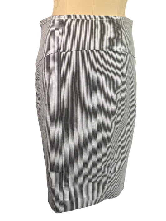 10 New York & Co Lined Blue White Seersucker Pencil Skirt Side Zip Below Knee